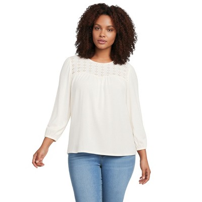 Lands' End Women's 3/4 Sleeve Eyelet Mix Flowy Top