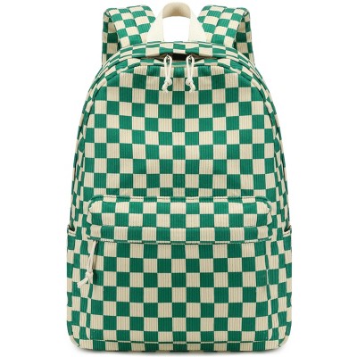 Narwey School Backpack for Teen Girls Bookbags Elementary High School Corduroy Laptop Bags(Mint green white checkered)