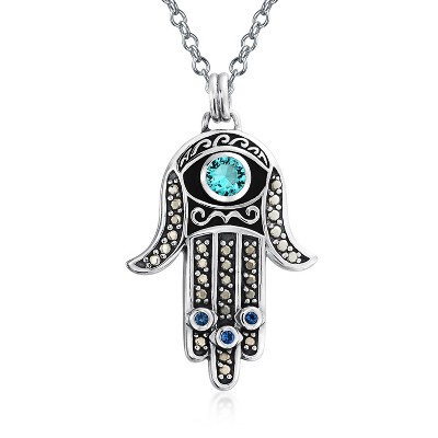 - blue hamsa hand necklace