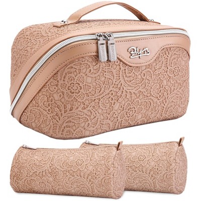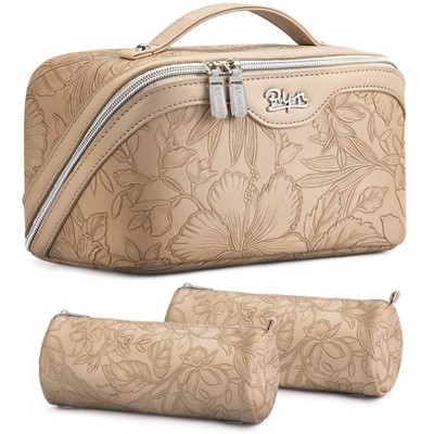 Narway Travel Makeup Bags Cosmetic Organizer Bag: 3-Set Large Capacity Make up Bag (A-Tan)