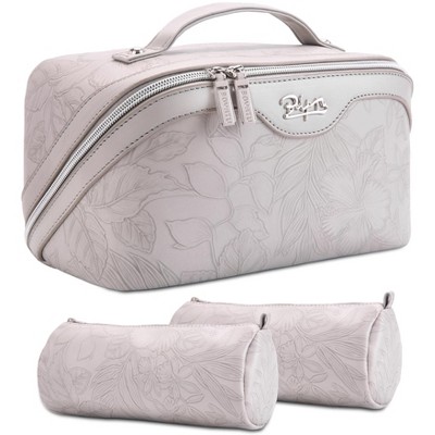 Narway Travel Makeup Bags Cosmetic Organizer Bag: 3-Set Large Capacity Make up Bag - PU Leather Toiletry Bags for Women(16-Grey-2)