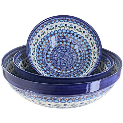 Blue Rose Polish Pottery 1400 Vena 3 Piece Serving Bowl Set
