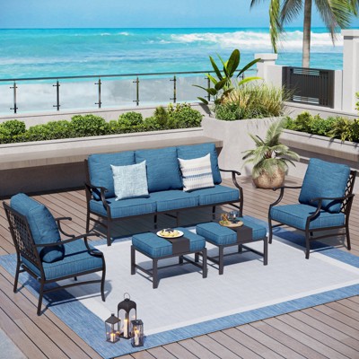 Captiva Designs 4pc extra large metal outdoor patio conversation set with swivel pattern-back chairs and coffee table