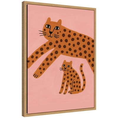 Kate and Laurel Leopards Pink by Laura Moss Framed Canvas Wall Art Print, Sylvie Natural, 18x24