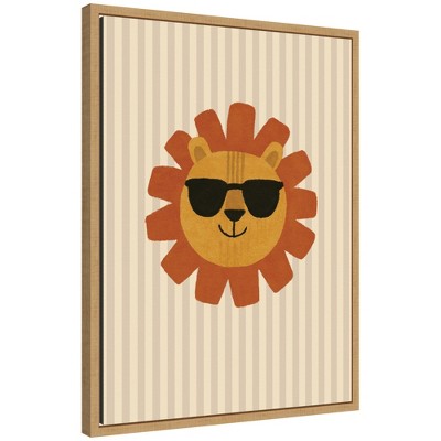 Kate and Laurel Cool Lion Rolled Poster Sunglasses by Laura Moss Framed Canvas Wall Art Print, Sylvie Natural, 18x24