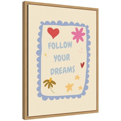 Kate and Laurel Follow Your Dreams by Laura Moss Framed Canvas Wall Art Print, Sylvie Natural, 18x24