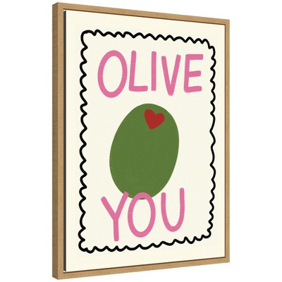 Kate and Laurel Olive You by Megan Ryan Framed Canvas Wall Art Print, Sylvie Natural, 18x24