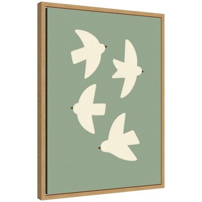 Kate and Laurel Minimalist Birds Poster 4 Green by Laura Moss Framed Canvas Wall Art Print, Sylvie Natural, 18x24