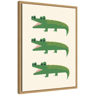 Kate and Laurel Alligator by Laura Moss Framed Canvas Wall Art Print, Sylvie Natural, 18x24