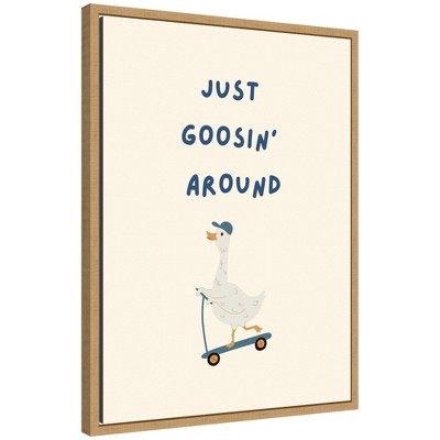 Kate and Laurel Just Goosin Around by Laura Moss Framed Canvas Wall Art Print, Sylvie Natural, 18x24