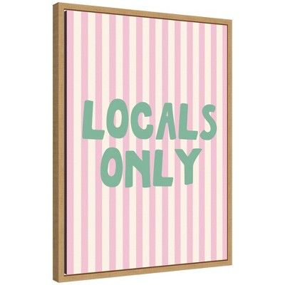 Kate and Laurel Locals Only Green and Pink Stripes by Megan Ryan Framed Canvas Wall Art Print, Sylvie Natural, 18x24
