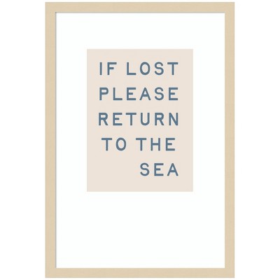 Kate and Laurel If Lost Please Return to the Sea by Megan Ryan Framed Wall Art Print, Svelte Natural, 17x25