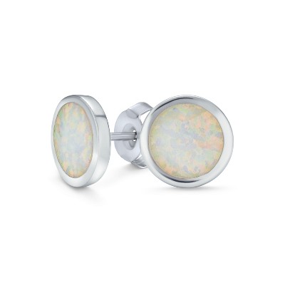 Bling Jewelry Classic Simple Iridescence Bezel Setting Flat Round Circle Created White Opal Stud Earrings .925 Sterling Silver Large 9MM