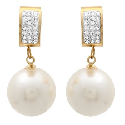 Steeltime Ladies 18kt gold plated stainless steel simulated pearl earring with simulated diamonds