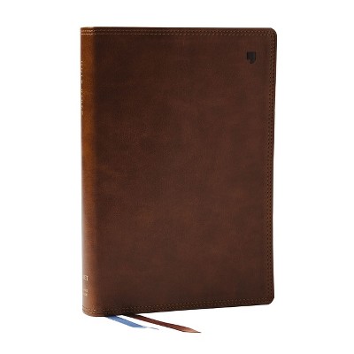 Net Bible, Large Print Thinline with Cross References, Brown Leathersoft, Comfort Print - by Thomas Nelson (Leather Bound)