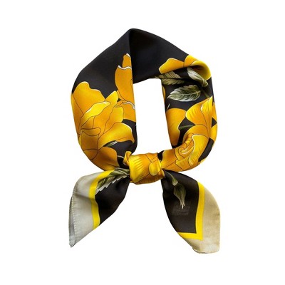 Anna-Kaci Square Satin Scarf Floral Lemon Print Lightweight Hair Neck Accessory 27.5×27.5Inches