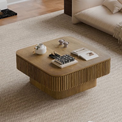 - large square wooden coffee table