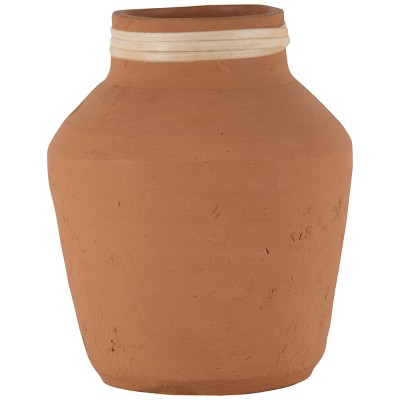 Natural Handthrown Terracotta & Rattan Accents Decorative Home Vase