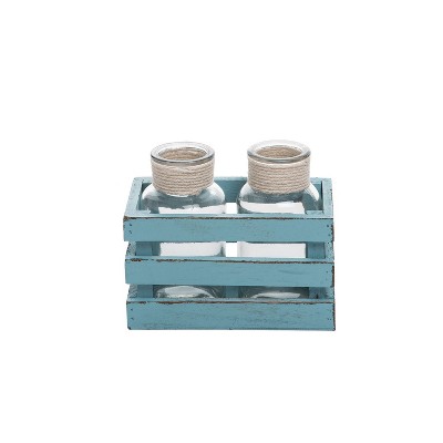 Beachcombers Small Turquoise Wood Crate With 2 Glass Bottles Rustic Wood Glass Decorative Gift Box Ocean Coastal Nautical Beach