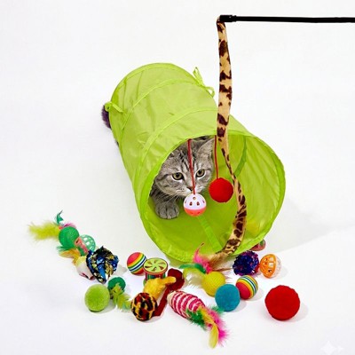 Alilang 21 Piece Cat Toy Set with Collapsible Cat Tunnel Interactive Balls Mice Feather Toys for Cats