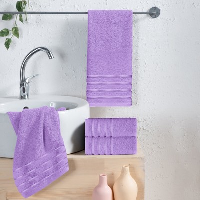 Elegant Comfort 4-Pack Turkish Cotton 4 Lines Stripe Hand Towel Set, 16 x 28 inch