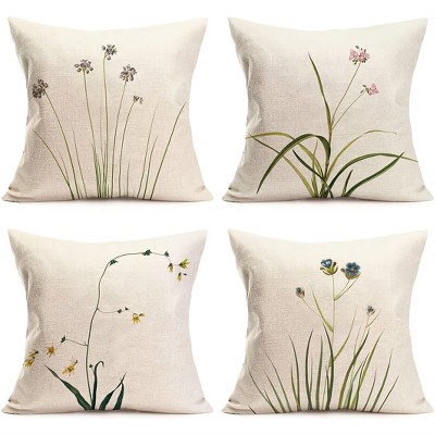 Lomsoe 4pcs Minimalist Hand Drawn Grass Flower Soft Pillow Cover For Sofa Bedroom Living Room Decor 18x18in.