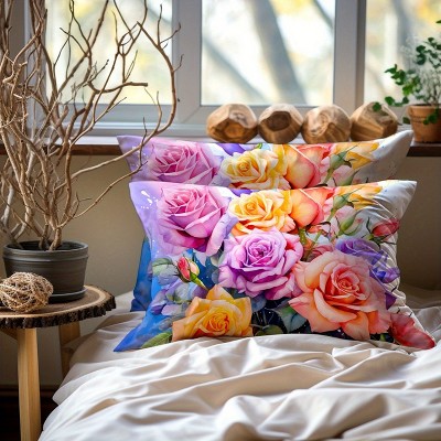 Lomsoe 2pcs Watercolor Mixed Color Tulip Soft Pillow Cover For Living Room Sofa Bedroom Home Decor 18x18in.