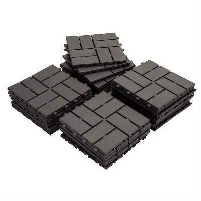 Gulches Interlocking Patio Deck Tiles 36Pack 12x12x0.79 Inch Dark Gray Plastic Four-Slat All-Weather Flooring