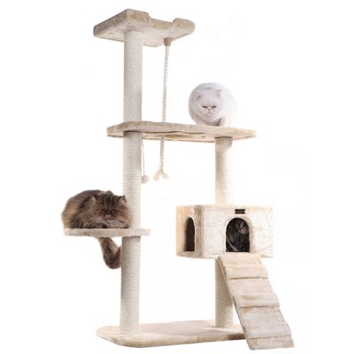 Armarkat 64" Real Wood Cat Tree With Scractch Sisal Post, Soft-side Playhouse, A6401, Almond