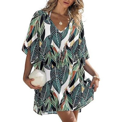 HAPPY BAY Women's Short Beachwear Bathing Suit Holiday Pareo Swimsuit Swimwear Sarong Wrap Cover up Wraps One Size Multicolored Leaf