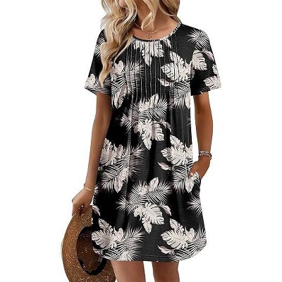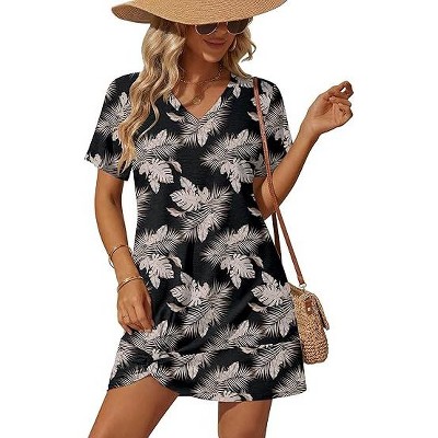 Ekouaer Swimsuit Coverup for Women 2026 Petal Short Sleeve Bathing Suit Cover Ups Summer T Shirt Dress Flowy Sundresses Floral Multi Leaf S