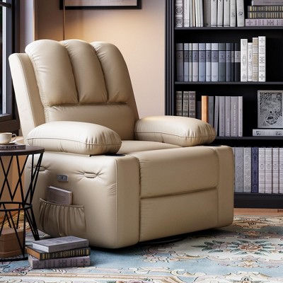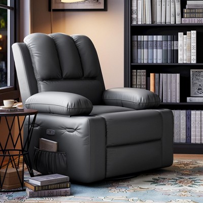 360° Swivel Electric Massage Recliner Chair with 3D Heat Therapy, Overstuffed PU Leather Power Lazy Sofa with USB Charger for Living Room