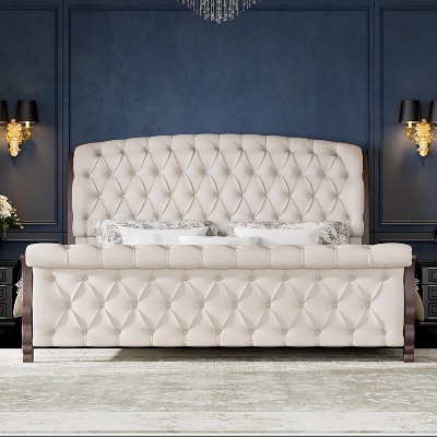 - beige upholstered bed
