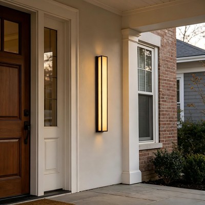 YANSUN 40.6in Black Outdoor LED Wall Light, IP65 Waterproof Linear Wall Sconce with Faux Alabaster Shade 30W 3000K Warm Light
