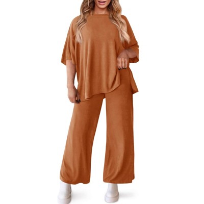 Imily Bela Womens Plus Size Lounge Sets Short Sleeve Tops Wide Leg Pants 2 Piece Outfits Tracksuit with Pockets