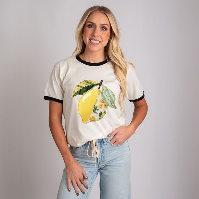 Lemon Faux Patchwork - Women's Ringer Graphic T-Shirt