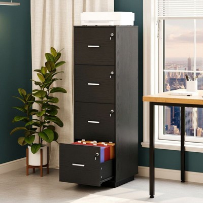 Karl Home15 Inch Embossed 4 Drawer Wooden Filing Cabinet