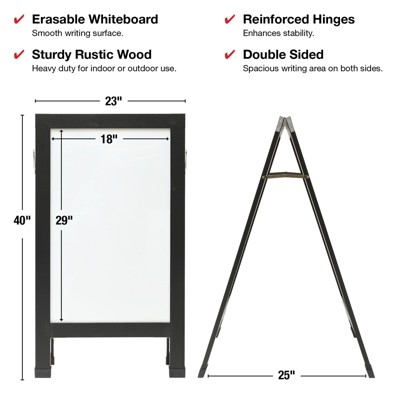 Excello Global Products 40" x 22" Indestructible A-Frame Whiteboard - Black
