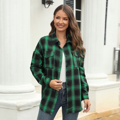 Womens Button Down Shirts Long Sleeve Plaid Shackets Business Casual Blouse Tops Plus Size Loose Fitting Shirt