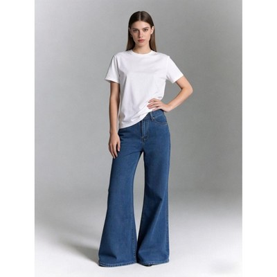 Women's High Waist Vintage Washed Flare Wide Leg Jeans, Casual Loose Denim Pants With Classic Pockets