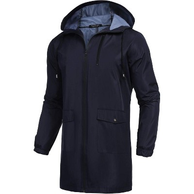 COOFANDY Men's Long Raincoat Ligtweight Rain Jacket Waterproof Outdoor Jackets with Hood