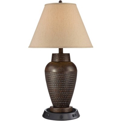 Regency Hill Auburn Rustic Farmhouse Table Lamp 25" High Bronze Hammered with Dimmable USB Workstation Base Natural Linen Empire Shade for Living Room