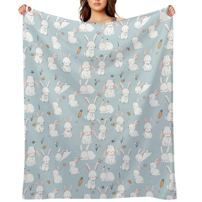 Kids Rabbit Blanket Cute Easter Rabbit Carrot Throw Blanket for Boys Girls Kawaii Animal Bunny Blue Blanket Spring Flowers Blanket 60x80 inches