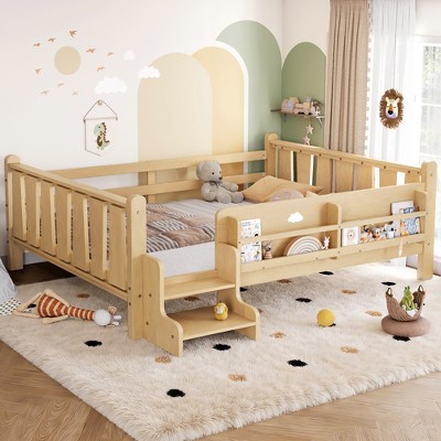 Tent-shaped Twin/Full Floor Bed Frame with Guardrails - ModernLuxe