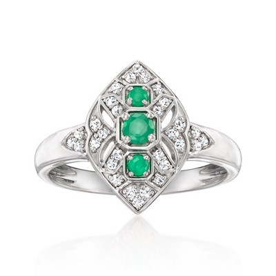 Ross-Simons 0.20 ct. t.w. Emerald Ring With .16 ct. t.w. Diamonds in Sterling Silver Size 7