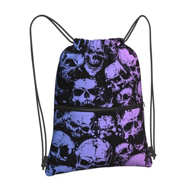 Gothic Skull Drawstring Bag, Halloween Goth Gradient Skeleton Drawstring Backpack, Light Large Capacity Durable Sackpack String Bag