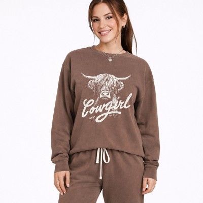 Cowgirl Highland Cow - Women's Lightweight Garment Dyed Sweatshirt