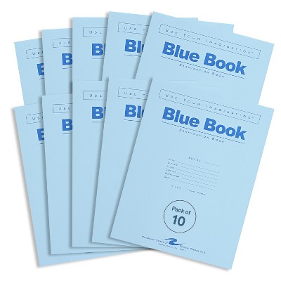 Pack of 10 Roaring Spring Exam Books with Blue Covers, 11" x 8.5", 4 Sheets/8 Pages, Wide Ruled with Margin, Proudly Made in the USA!
