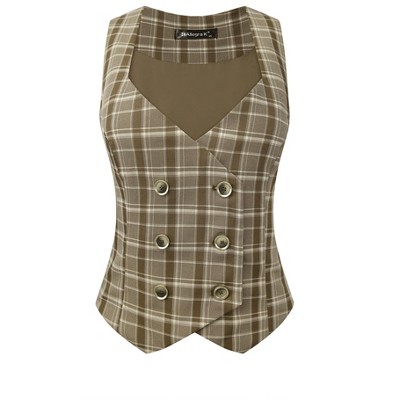 Allegra K Women's Plaid Vintage Steampunk Waistcoat Suit Vest