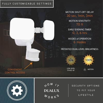 Home Zone Security® 3,000-Lumen Twin-Head Halo Dual-Brightness LED Security Floodlight